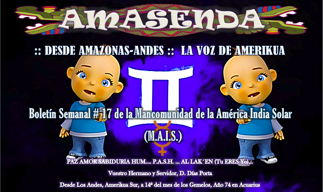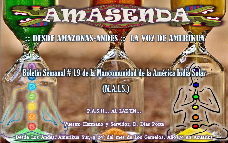 AMASENDAVOZ DE AMERIKUA DESDE AMAZONAS-ANDES Boletín Semanal # 18 de la Mancomunidad de la América India Solar (M.A.I.S.)Apreciados Amigos Espirituales, […]