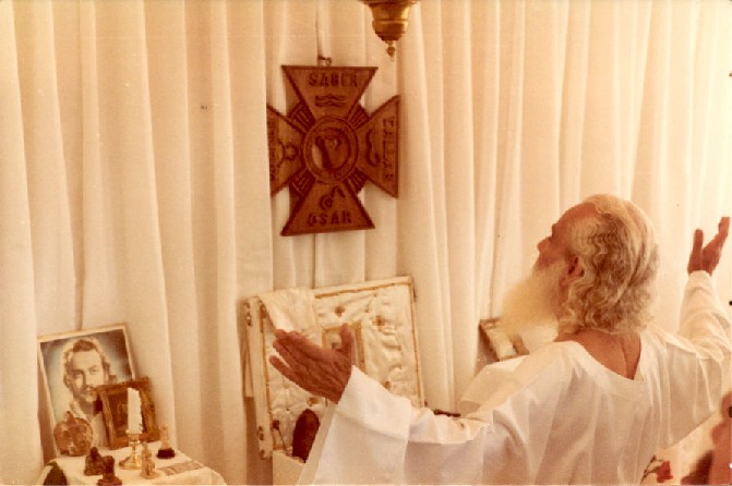 La primera parte de la ceremonia es la parte profana. Profana quiere decir que venimos con los enredos de la calle y todo, y al hacer el círculo nos limpiamos, con hacer una oración. Y eso ya nos prepara para entrar a la parte sagrada de la ceremonia. Se llama Ceremonia Cósmica porque cada parte corresponde a un planeta del sistema solar; la vibración, la energía, el símbolo; porque se hace cerca de la naturaleza, cuando es posible, y porque tomamos en cuenta la posición de los planetas en el firmamento; el sacerdote por lo menos, para ajustar el trabajo a la condición cósmica y terrestre en que nos encontramos. La finalidad de la ceremonia es irradiar la energía de la Era de acuario, de la constelación de Acuarius, hacia el aura de la Tierra. Para el oficiante en ese momento, la Tierra es un granito de polvo, no le cuesta nada cubrir la Tierra, el aura de la Tierra, de luz, de la que trae la Era del Acuarius, de la del Saber, de la ciencia, del conocimiento, del despertar espiritual, de restablecer la Ciencia Sagrada.